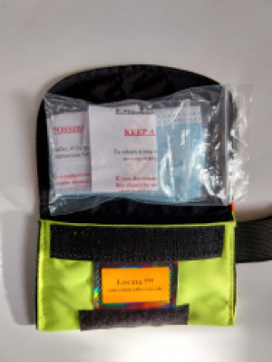 The Rider Locata can go over your coat on to your upper arm or around the top of long riding boots or on a belt and since Covid it comes with new updated covid information and a PPE face mask inside.